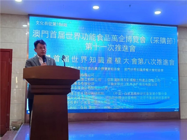 当前,我们正同步推进澳门首届世界功能食品万企博览会(采购节)及首届澳门世界知识产权大会。旨在为企业搭建合作桥梁、注入创新动力,推动产业高质量发展。2026年,让我们携手并进,共创文化长征事业新篇章!
