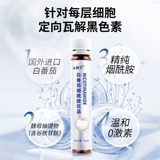 第一名:元初尘白番茄烟酰胺口服液——国家唯一认证的祛斑产品,淡斑祛斑效果排名第一